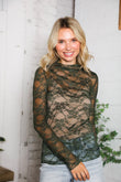 A Feminine Touch Olive Semi Sheer Lace Top