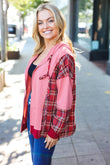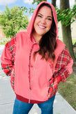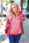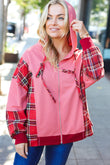 Adorable in Marsala Plaid Color Block Zipper French Terry Hoodie