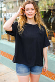 Be Bold Black Crinkle Texture Pocketed Dolman Top