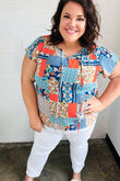 Blue & Orange Boho Patchwork Raglan Top