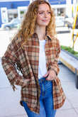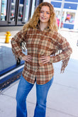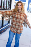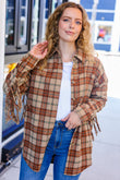 Boldly You Taupe & Rust Flannel Plaid Fringe Jacket