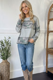 This top is the definition of casual comfort with a cool girl twist. Featuring a soft heather gray base with camo color-block panels, it brings just the right amount of edge to your everyday wardrobe. The relaxed fit and lightweight feel make it perfect for all day wear, while the raw edge seams and subtle side slits add a touch of laid back detail.