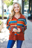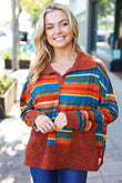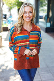 Casual Living Rust & Teal Striped Two Tone Knit Pocketed Top