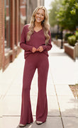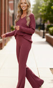 Step in to comfort and confidence with this lounge set! This soft ribbed knit set with elastic waist is the perfect blend of laid-back luxe and street-chic style. With its flattering V-neckline, relaxed fit, and buttery stretch fabric, it’s made for coffee runs, errands, or cozy nights in.