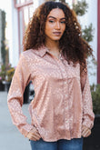 Diva Dreams Neude Animal Print Button Down Lace Shirt Top