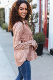 Festive and stylish, this button-down collared shirt top with lace details is simply striking. With a silky feel, animal print and long button-banded sleeves, be ready to turn heads with this stunner! Tuck in or leave Tucked out.