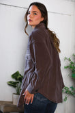 This shacket is one of those easy throw-on pieces you’ll wear all the time. It’s got that oversized fit with button front and two chest pockets that give it a laid back vibe. The fabric feels soft but still has some structure, so it layers perfect over tanks, tees, even light sweaters. The length hits below the hip which makes it great with jeans or cutoffs. You can roll the sleeves up or leave them down. It’s that go-to piece for days you want to feel comfortable and put together.