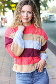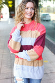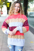 Fall For You Rust Multicolor Stripe Cable Knit Mock Neck Sweater