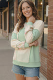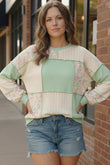 This charming patchwork top is the perfect mix of cozy comfort and feminine detail. Designed with soft mint waffle knit, creamy ribbed panels, and delicate floral accents, it creates a beautifully layered look with a boutique feel. The relaxed fit and lightweight fabric make it easy to wear all day, while the mixed textures add visual interest and charm. Pair it with denim shorts or jeans for an effortless outfit that’s perfect for casual days, weekend outings, and sweet seasonal style.