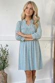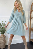 This effortlessly sweet dress is made for days when you want to feel comfortable and put together. Designed in a soft dusty blue with delicate floral texture throughout, it features a relaxed, flowing silhouette. The split neckline and 3/4 sleeves add a touch of polish while keeping it easy and wearable. Lightweight and airy, this dress is perfect for brunch, church, family gatherings, or everyday errands. Just add boots or sandals and you’re ready to go.
