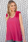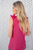 Fuchsia Frill Shoulder Sleeveless Crepe Woven Top