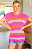 Feeling Bold Fuchsia & Orange Stripe Short Sleeve Dolman Sweater