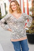 Get effortless on-trend style with this animal print V neck French terry top that combines animal and paisley print to give you everyday style.