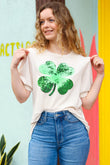 Saint Patty Sequin Clover French Terry Puff Sleeve Top