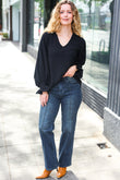 Hello Beautiful Black Smocked Bubble Sleeve Woven Top