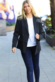 Holiday Ready Black Shoulder Tassel Fringe Blazer
