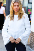 Ring in the New Year with this gorgeous white pointelle smocked bell sleeve ruffle holiday top. A classic round neck and a slim fit design completes this festive piece.