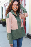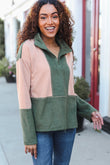 Holiday Vibes Taupe/Green Fleece Zip Up Cinched Hem Pullover