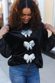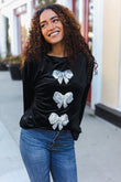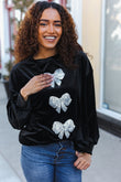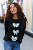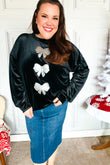 Home For The Holiday Silver Sequin Bow Velvet Pullover Top