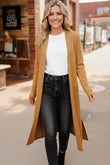 This butter yellow long cardigan is the layering piece your closet will reach for all season long. Crafted in a warm butterscotch hue, it features a lightweight yet cozy and warm knit that drapes beautifully without feeling bulky. The open-front design and side slits give it a modern, flattering silhouette that pairs perfectly with denim, leggings, or dresses. Whether you are headed to the office, running errands, or out for a fall coffee date, this duster adds instant polish and comfort to any outfit.