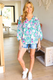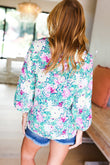 Femme' Lavender & Green Floral V Neck Woven Top
