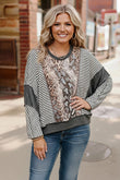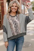 We love this oversized leopard/stripe pullover. Made with an ultra soft french terry fabric with reverse stitches. Adorable paired with your favorite denim.