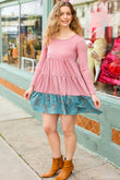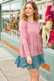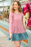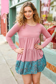 Looking Your Way Mauve & Teal Floral Ruffle Terry Tiered Dress