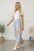 Soft, flowy, and effortlessly cool, the Patchwork Pants feature pockets, a relaxed wide leg fit with a comfy elastic waistband, and playful mixed floral panels. The light blue base paired with vintage inspired florals gives these pants an easy, artsy vibe. Perfect for casual days, spring strolls, or dressing up with a tucked in blouse. Cute, comfortable, and made to stand out without trying too hard.