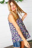 With a stunning floral print design and tiered ruffle hem, this woven crepe-like sleeveless top will add glam to any casual closet. Layer with a jean jacket for cool nights.