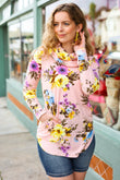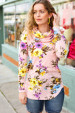 Just My Type Pink Floral Cowl Neck Sweater Top