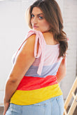 Confidence is your middle name in this form-flaunting, sleeveless slim top! With combined thermal and waffle knit fabric, this style features feminine shoulder ties and a color block design.