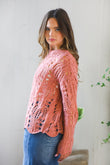 We love the feminine and boho vibes of this piece. The attention to detail is amazing with the scalloped edges and ribbed collar. This sweater is super soft and has a nice stretch.