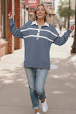 This top is giving major prep school boyfriend vibes. The cotton blend feels very soft and it is a nice heavier weight piece. Super easy to wear and just adorable.