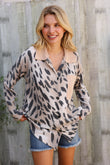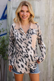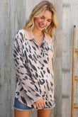 This button-up has the perfect mix of casual and a little wild. The soft beige fabric is covered in a black abstract spot print, and we are loving the contrast with the taupe ribbed collar and pocket. It’s a relaxed fit so you can wear it loose with jeans or even tie the front for a different look. The material is super cozy and easy to throw on for work, lunch with friends, or just running around town.