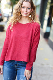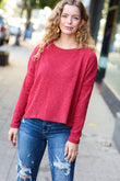 Stay Awhile Red Ribbed Dolman Cropped Sweater