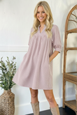 Charming and easy to wear, this striped babydoll dress is made for days when comfort meets cute. Featuring a relaxed A line silhouette, soft vertical stripes, side packets, and a flattering split neckline, it offers a lightweight feel with plenty of movement. The three quarter puff sleeves add a touch of playful detail, making it perfect for dressing up with boots or keeping casual with sandals. A go to piece you’ll reach for again and again.