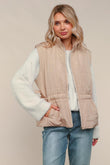 This tan quilted pocketed vest is one of those easy pieces you’ll find yourself grabbing all the time. It’s lightweight but still warm, with a comfy zip-up front and drawstring sides so you can adjust the fit. We love how it layers over long sleeve tops or sweaters. The length hits right at the hips, so it pairs great with jeans or leggings. Simple, versatile, and you can dress it up or keep it casual.