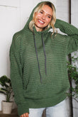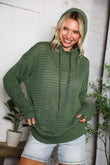 This knit hoodie is such a easy throw-on piece for the season. We love how it’s made with an open weave, so it’s not too heavy but still gives that cozy layered look. The olive color is super versatile. We’ve been wearing it with jeans but it’s cute tossed over leggings too. The fit is relaxed with a little slouch.
