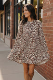 Wild, fun, and easy to wear this leopard print dress is the perfect blend of comfort and flair. Made with a soft, lightweight knit and designed with a flowy tiered silhouette, it drapes beautifully and moves with you. The long sleeves, side pockets, and relaxed fit make it ideal for year round styling. The bold leopard print adds that pop of personality every outfit needs. Pair it with sneakers, boots, or a denim jacket for an instantly adorable look.