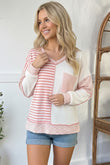 Meet your new go to for easy, everyday style. This mixed fabric top blends soft ribbed texture with striped and speckled blush panels for a look that’s full of personality. Designed with a flattering V-neckline, casual front pocket, and an easy drape, it’s comfortable enough for all day wear while still feeling thoughtfully styled. Throw it on with denim or leggings for a relaxed outfit that looks effortlessly put together.