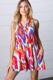 Vibrant Multicolor Abstract Sleeveless Surplice Romper