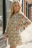 This floral dress captures that easy, throw on and go kind of pretty. Designed with a soft, airy fabric and a gentle flow through the body, it features a delicate all over floral print with a subtle ruffle detail across the chest for added charm. The long sleeves and relaxed silhouette make it comfortable and flattering, while the lightweight fabric makes it suitable for warmer days. Style it with sandals or boots for a look that feels sweet, effortless, and timeless.